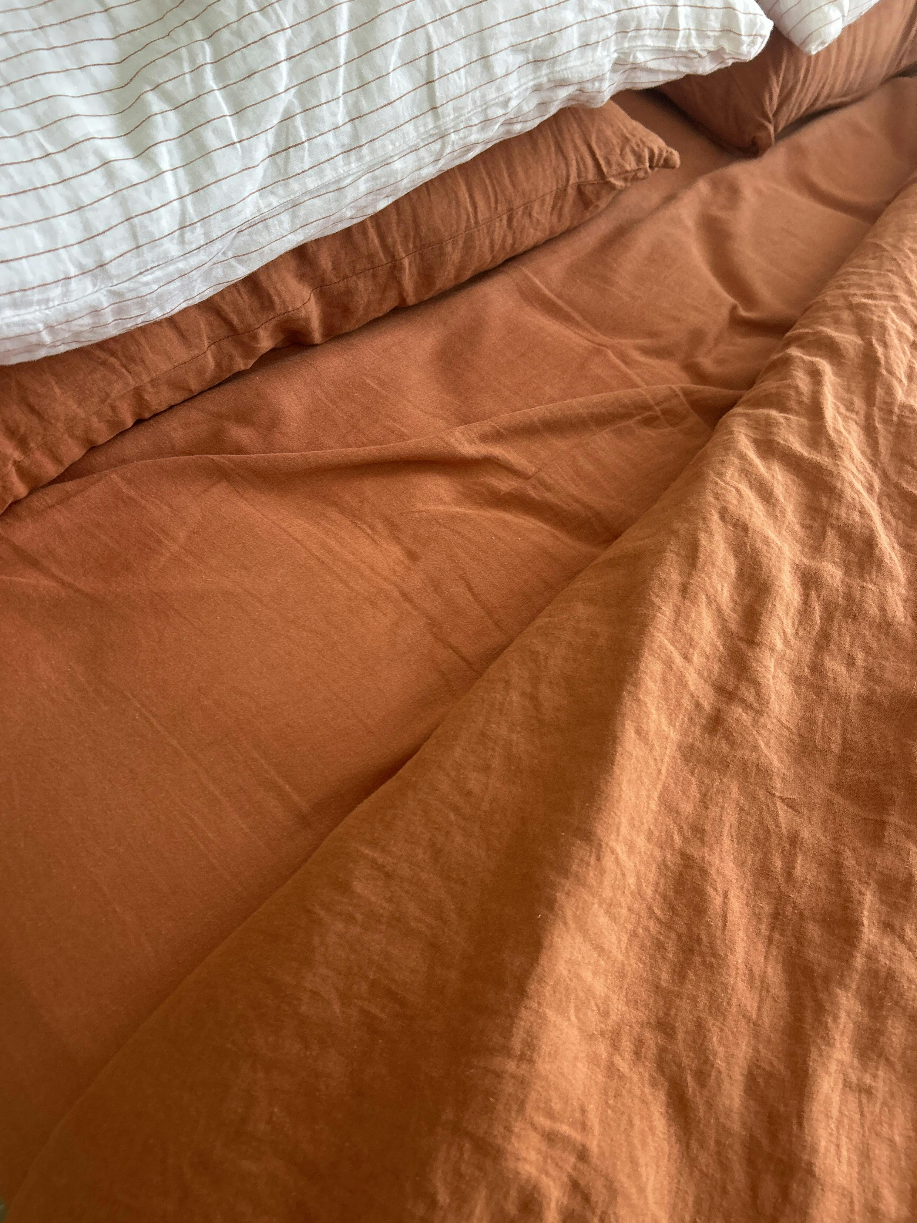 Very pleased with my gold linen quilt cover.Buttery soft after 1st wash, fits quilt and bed well. Easy on off with lovely detail ties to fasten