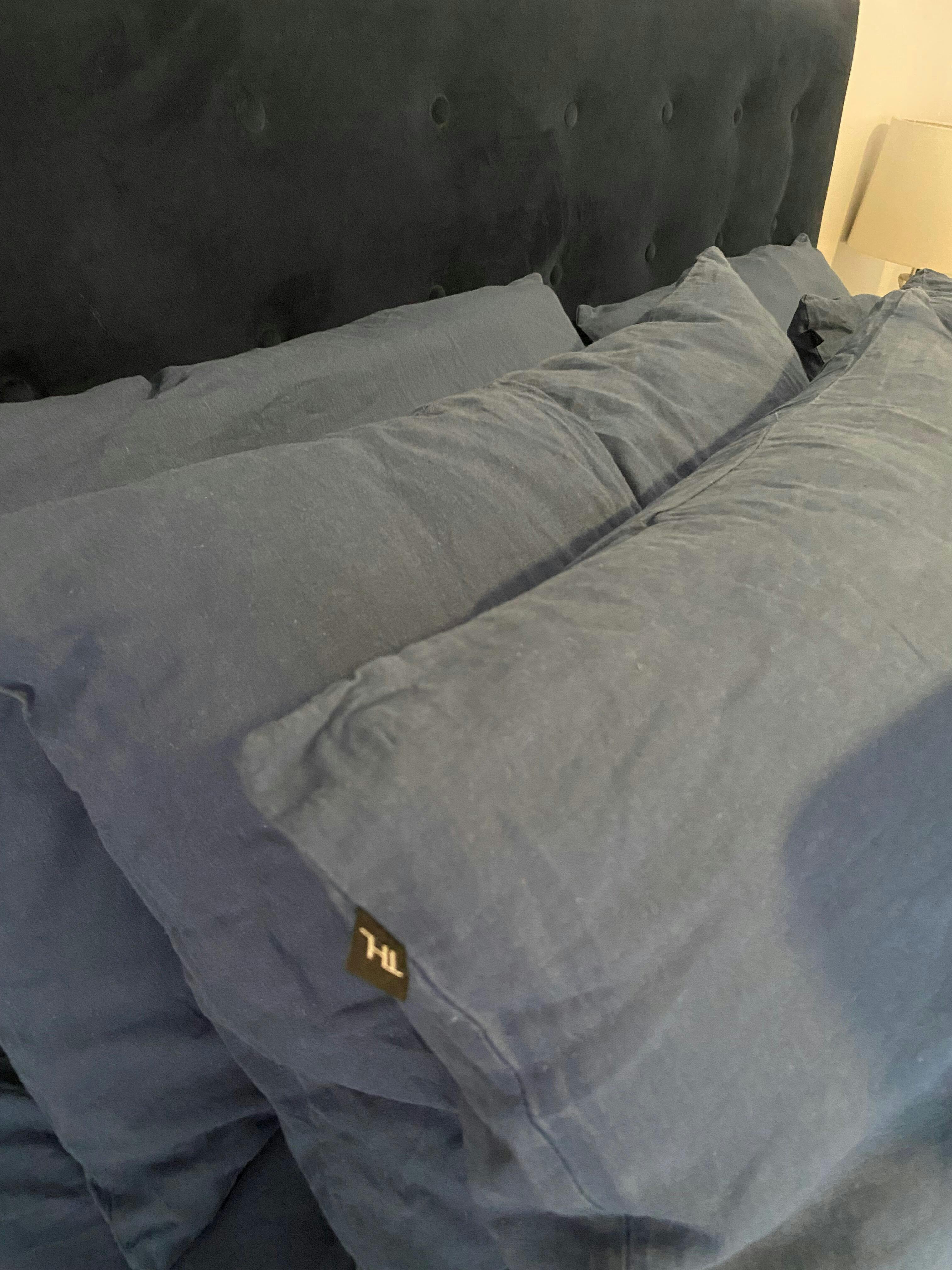 I purchased the complete set including extra pillow cases. I chose this company for the uniqueness of the sheet colour and I was a little disappointed when they arrived as Ocean Blue was not as vibrant as in the photos in-fact the blue is rather dull. The quality of the linen is ok and they are soft. With 40% off and still $554, you would expect to be something special but for the price, I’m not really feeling it.